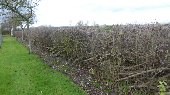 Same view as previous image in December 2021 with two year's regrowth. The top of the hedge has been trimmed to keep it tidy. Wire fence and posts no longer visible